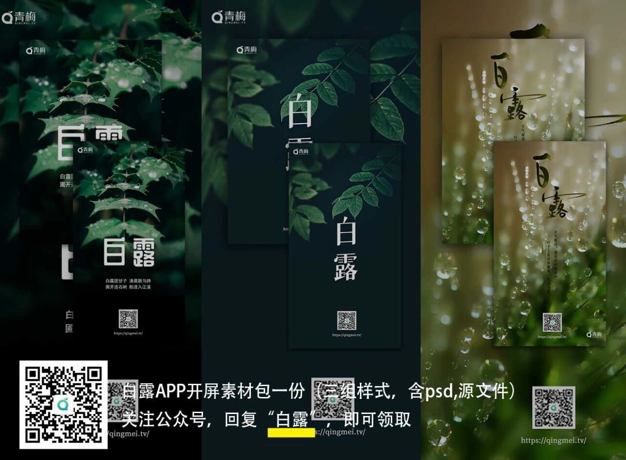 白露APP开屏素材包一份(三组样式,含PSD源文件) 关注公众号,回复“白露”,即可领取。