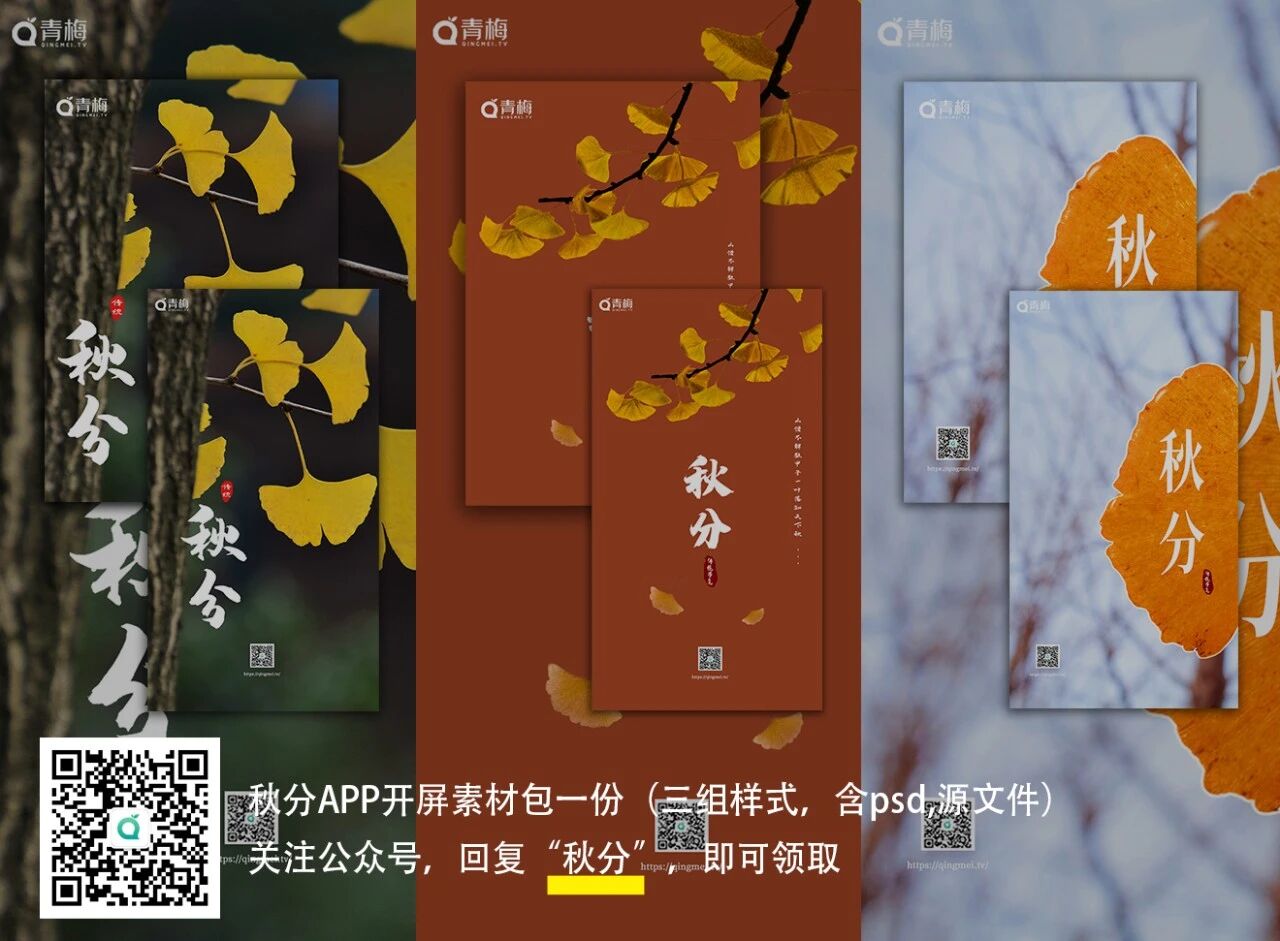 秋分APP开屏素材包一份(三组样式,含PSD源文件) 关注公众号,回复“秋分”,即可领取。